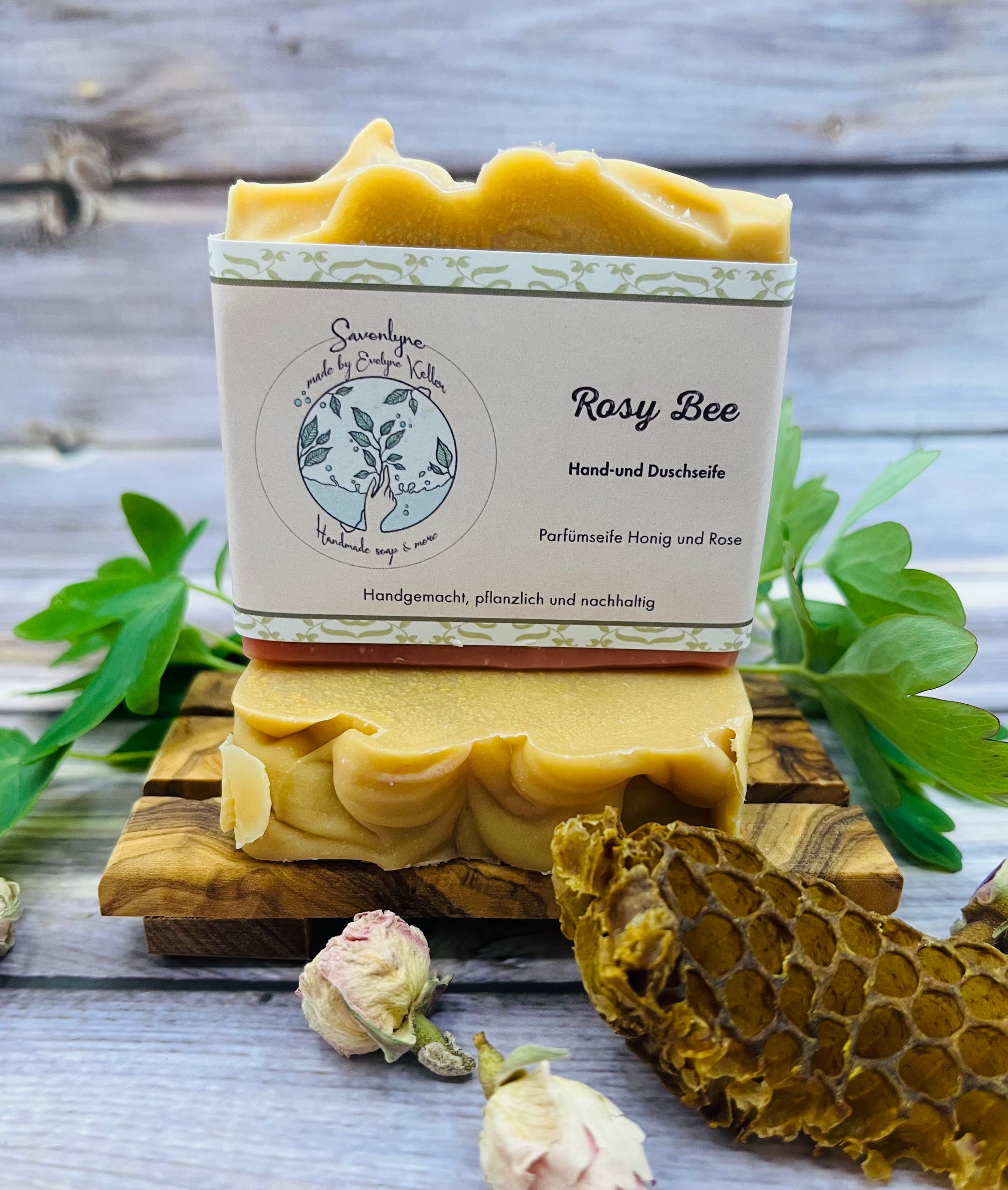 Ein zarter, blumiger Duft aus Rose und Honig macht diese Seife zu einem echten Lieblingsstück. Sie enthält ECHTEN Honig, der für seine HAUTBERUHIGENDEN und FEUCHTIGKEITSSPENDENDEN Eigenschaften bekannt ist.